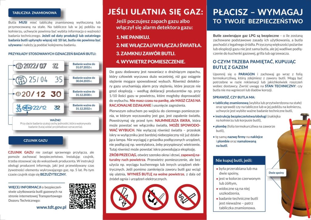 W odpowiedzi na te dane dotyczące użytkowania butli na gaz LPG, Transportowy Dozór Techniczny, przy wsparciu Ministerstwa Infrastruktury, rozpoczął kampanię informacyjno-edukacyjną BEZPIECZNA BUTLA – BEZPIECZNY DOM, której celem jest zwiększenie świadomości dotyczącej bezpiecznej eksploatacji butli na gaz LPG oraz edukacja, jak uniknąć zagrożeń i postępować zgodnie z przepisami technicznymi oraz zasadami bezpieczeństwa. Zarząd Komunalnych Zasobów Lokalowych postanowił włączyć się w akcję edukacyjną, która jest bardzo ważna dla każdego najemcy.