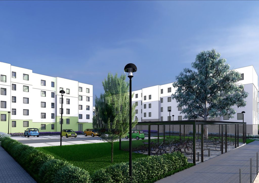 Projekt zakłada również zagospodarowanie terenu wokół bloków. Przewidziano plac zabaw oraz dwa parkingi, w tym 15 kopert przeznaczonych dla osób z niepełnosprawnościami. Wszystkie mieszkania, części wspólne oraz miejsca postojowe mają być dostępne dla osób z ograniczeniami ruchowymi. W budynkach znajdą się także przestrzenie do przechowywania rowerów.
