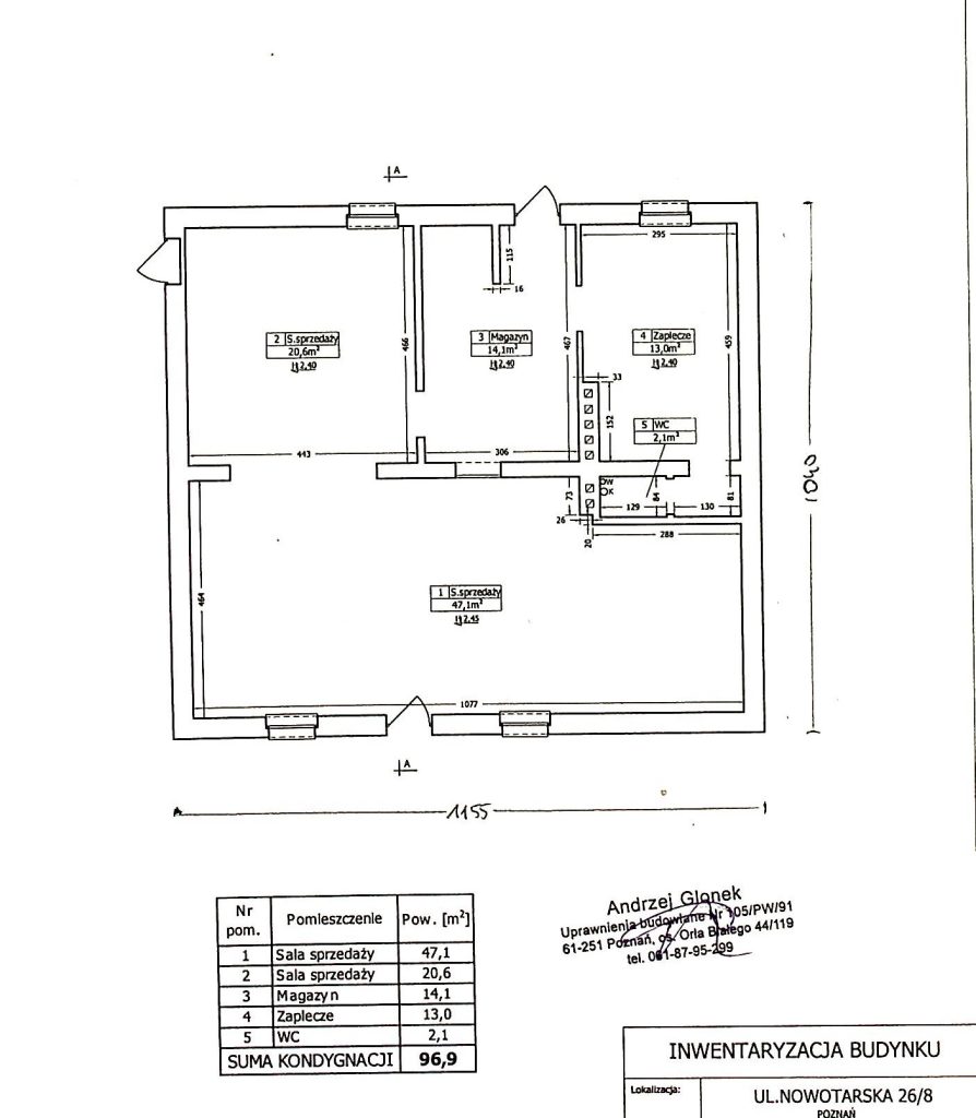 Oferujemy do wynajmu atrakcyjny lokal użytkowy usytuowany w wolnostojącym budynku przy ul. Nowotarskiej 26 o łącznej powierzchni 96,90 m2, wraz z terenem przyległym 96,90 m2.