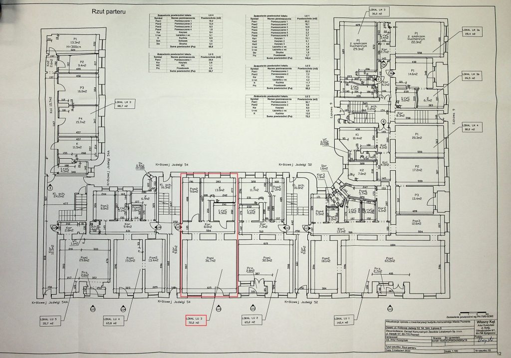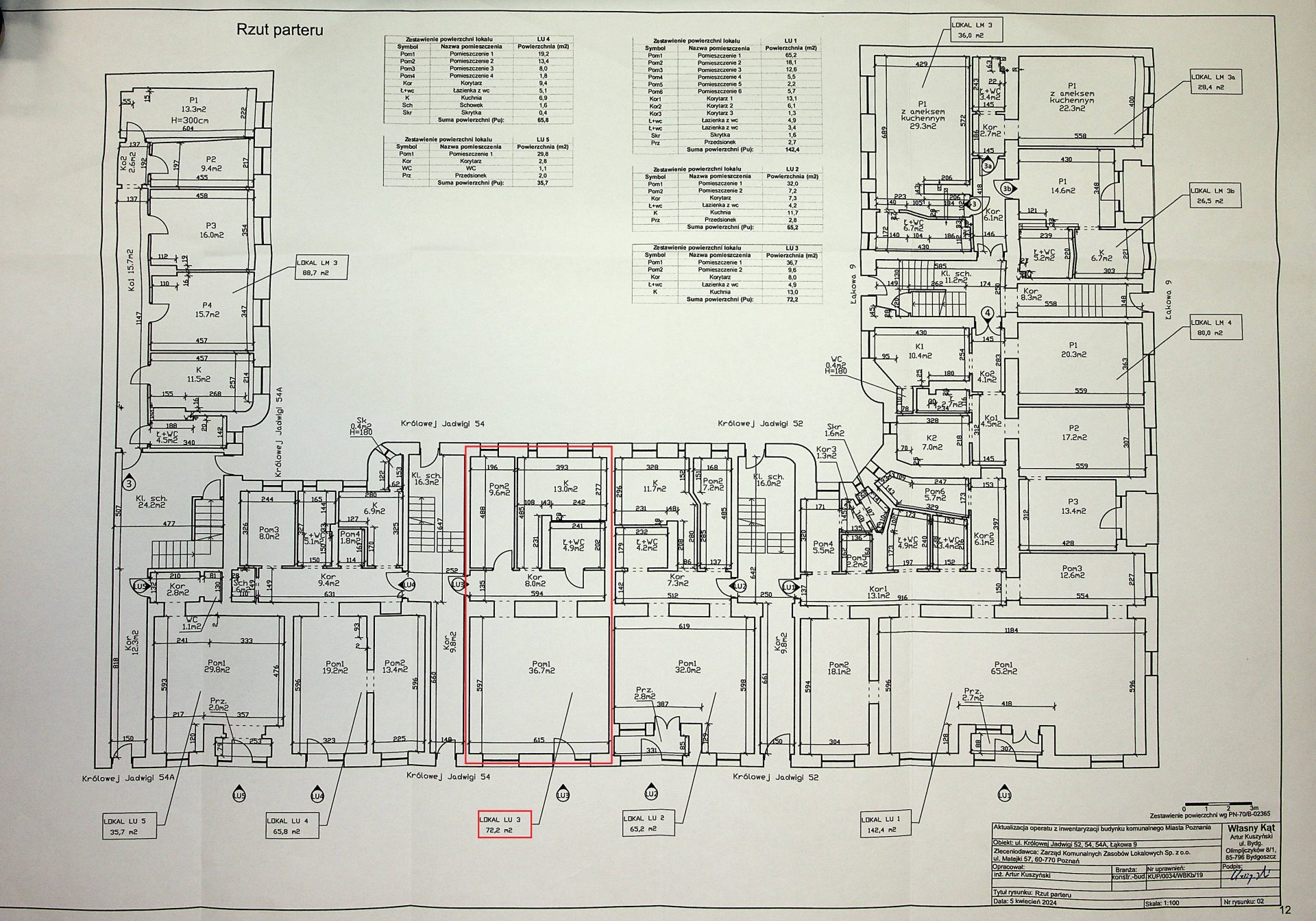 Oferujemy do wynajmu atrakcyjny lokal użytkowy usytuowany na parterze w kamienicy przy ul. Królowej Jadwigi 54 o łącznej powierzchni 72,20 m2.