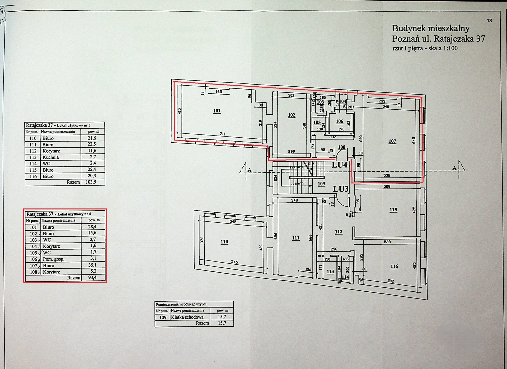 Oferujemy do wynajmu atrakcyjny lokal użytkowy usytuowany na I piętrze kamienicy przy ul. Ratajczaka 37 o łącznej powierzchni 116,30 m2.